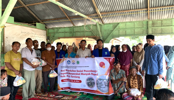 Kegiatan ini merupakan program hibah dari Lembaga Penelitian dan Pengabdian kepada Masyarakat Universitas Samudra (LPPM) dengan sumber pendanaan dari DIPA Universitas Samudra Tahun 2026. Program tersebut bertujuan membantu masyarakat yang terdampak bencana banjir serta memberikan edukasi mengenai kesiapsiagaan menghadapi bencana di masa mendatang.